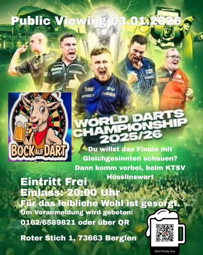Wir bringen den Ally Pally nach Berglen, genauer gesagt ins Vereinsheim des KTSV Hößlinswart.